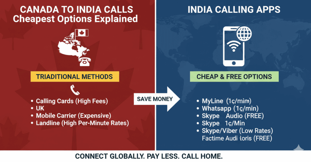 How to Call India From Canada: Cheapest Options Explained (2026 Guide) How to Call India From Canada: Cheapest Options Explained (2026 Guide) Step-by-step dialing, affordable VoIP apps, free methods, and rates for calling Indian mobiles from Canada 1,400 words · 14 min read · Updated December 2025 In 2026, calling India from Canada is affordable […]